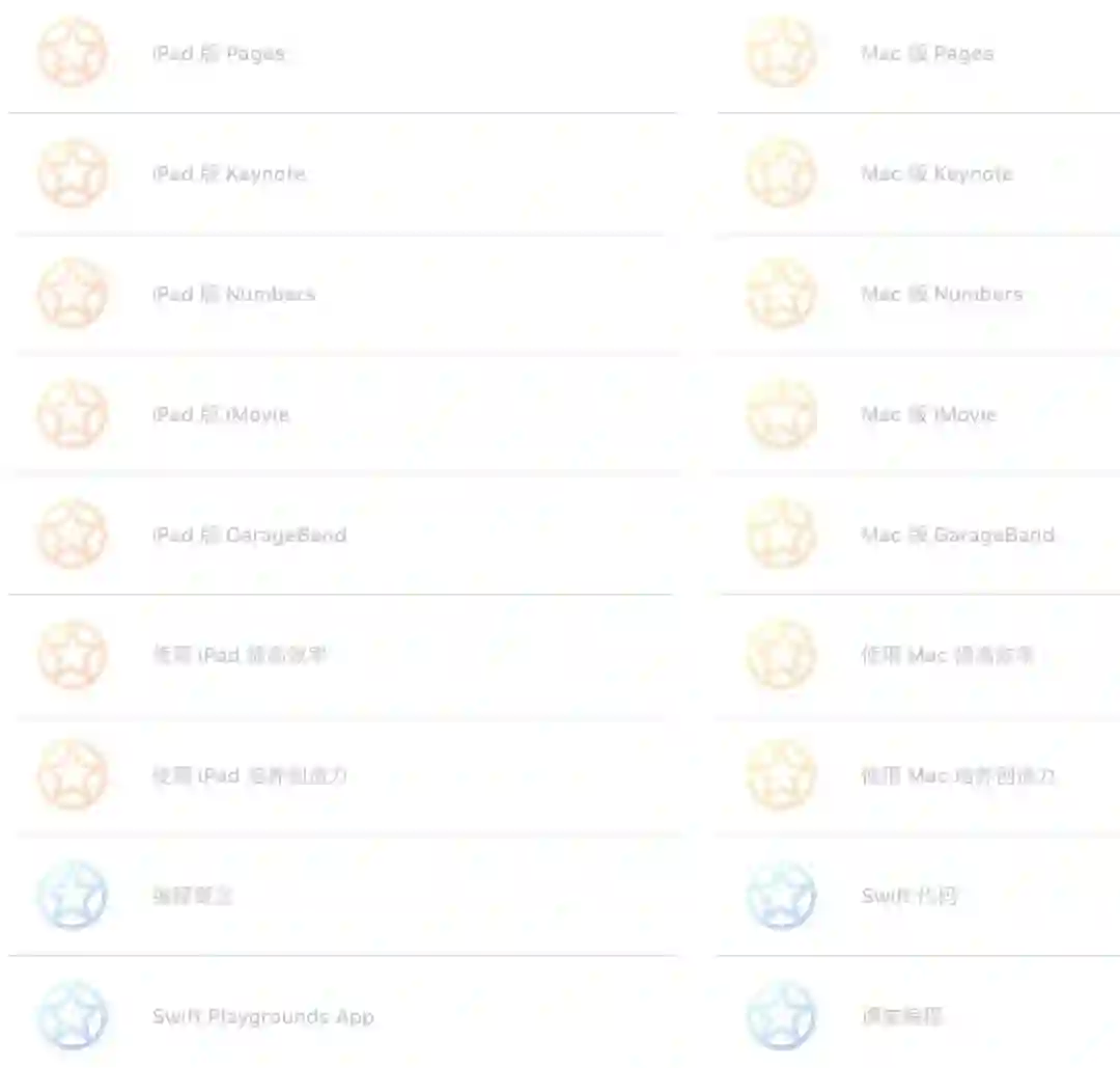 当你学完每个内容的时候,都可以在 Apple Teacher 学习中心参加一个小测验,若测验通过了,就会在下面的成就墙中点亮一颗星星。若你点亮了所有的星星,账户就会被授予正式的「 Apple 教师」称号。这套系统会在激励你学东西的同时,可供你随时自我测验并检查掌握情况。