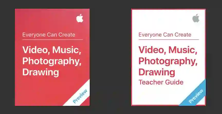 中文版学习中心虽已拥有绝大多数学习资源的中译版,但部分最新的教程,比如下面的「视频,音乐,摄影与绘画」这本书目前就暂时还没翻译。若你的英文水平较好,可以考虑使用英文版本的 Apple Teacher 学习中心,由于中文翻译需注定会耗时,相较之下英文原版学习中心内容会更新更多。