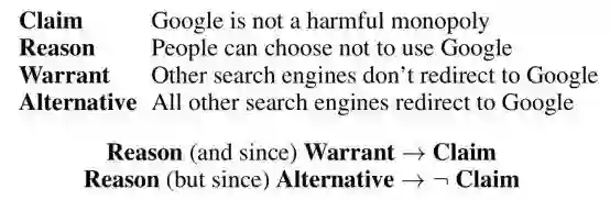 举个例子,假设论点是“谷歌不存在垄断”,原因是“人们可以选择不使用谷歌”。这一推理成立背后需要一个论据,即“其他搜索引擎并没有导向谷歌”。但是如果说“其他搜索引擎都导向了谷歌”,那么论点就不能成立了。