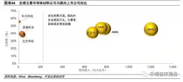 目前国内厂商离全球领先企业差距较大。除中微半导体在蚀刻机领域成为全球一线供应商外,其他领域在三年内达到世界领先水平的可能性较低。