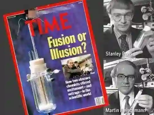 1989年,美国两位化学家弗莱施曼和庞斯在犹他大学建立了一个实验室,他们用一个钯电极来电解重水,电解出的氘吸附在钯电极中,他们观察到一个反常现象,钯电极的温度竟然上升了很多。通过计算,这个升温绝不可能是氢气和氧气化合而带来的。