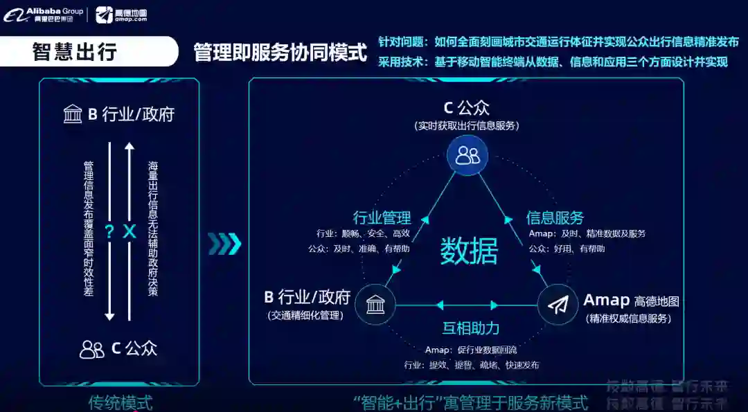 正式分享开始后,苏岳龙首先从信息,协同,创新三个方面,介绍了高德地图在过去几年在城市交通大脑和智慧出行领域做的工作。