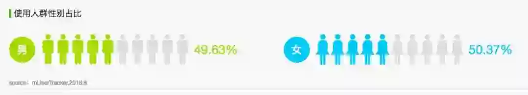 2)用户性别分布男女比例较为均衡,为49.63:50.37,基本持平。