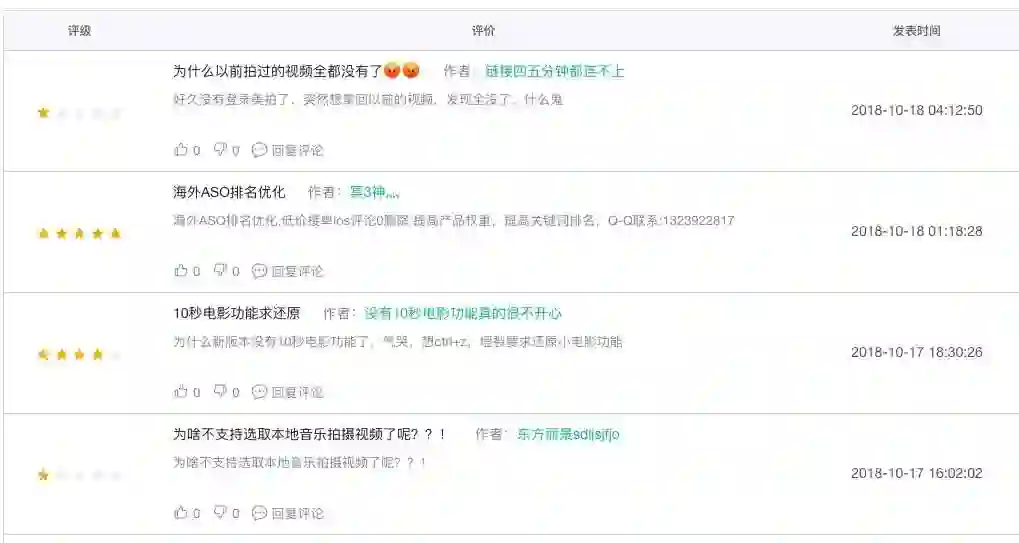随机选取最新评论,可以看到内容较差,不是负面评价就是广告,这点需要官方进行把控。