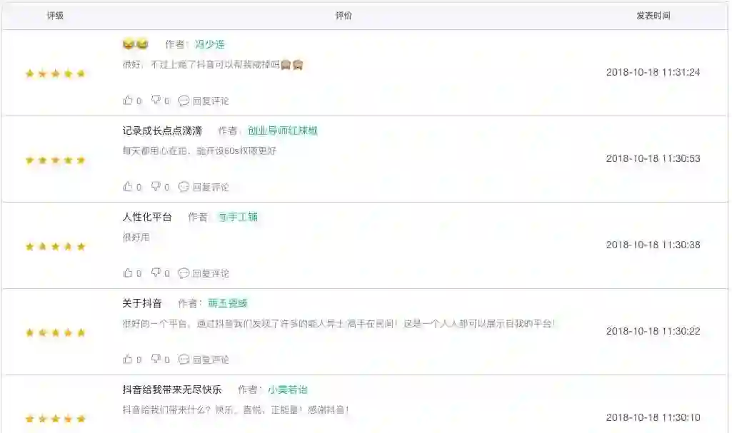 从用户评价方面可以看到,抖音的口碑非常好,平均分为4.9,评价内容也都较为正向,都是夸赞内容质量高,容易上瘾等。