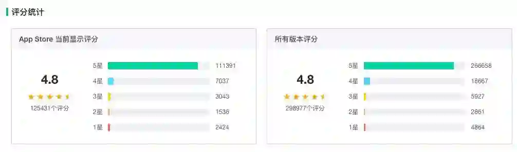 总体评分为4.8分,与抖音的4.9分相比表现依然较为不错。