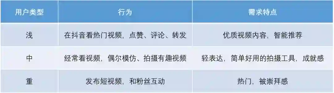 浅层用户:一个刚下班在坐地铁的用户,觉得很无聊,打开抖音,看到智能推荐的视频很有意思,点赞评论,看了一路直到下车。