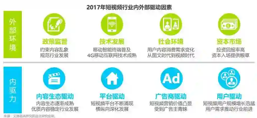 根据艾瑞咨询发布的2017年中国短视频行业研究报告显示,短视频行业正处于高速发展阶段,主要原因为内外两方面,并且这种增长趋势还将继续。