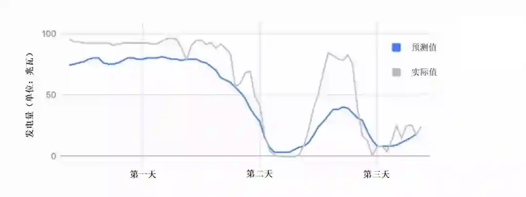 DeepMind预测的风力发电量和实际发电量对比