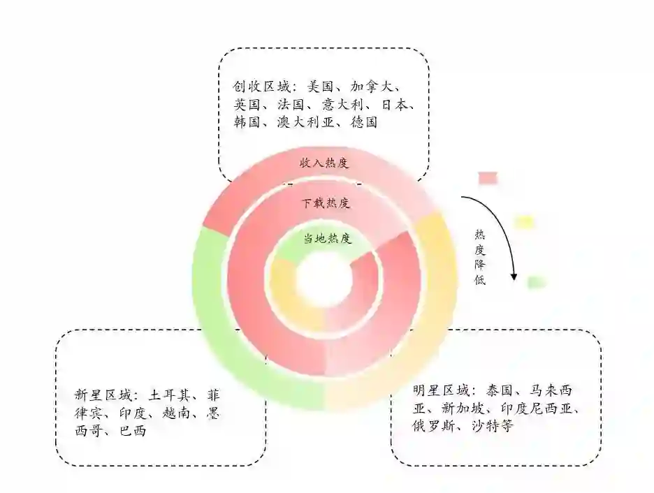 (移动游戏出海三类热点国家和地区 来源:腾讯研究院)