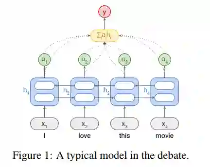 中的实验设定,首先注意力机制需要跟整个模型联合起来运行才是有用的,单纯找到一个对抗分布是没有意义的,不能为了分布而找分布。于此同时,本文提出了一些实验方法,包括 uniform-weights baseline,expected variance, diagnose attention 等,通过这些实验发现能够通过一定的方法获取针对同一输出结果的不同注意力解释,因此注意力能够用于解释,但范围是受限的。