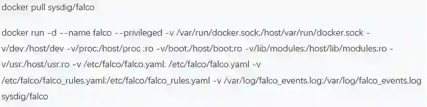 然后,我们可以从Docker Hub拉取镜像并启动Sysdig Falco容器,安装我们之前定义的配置文件: