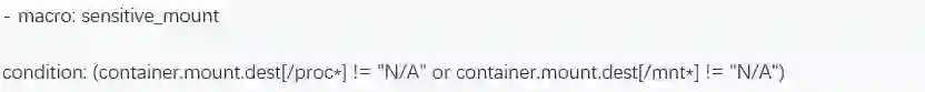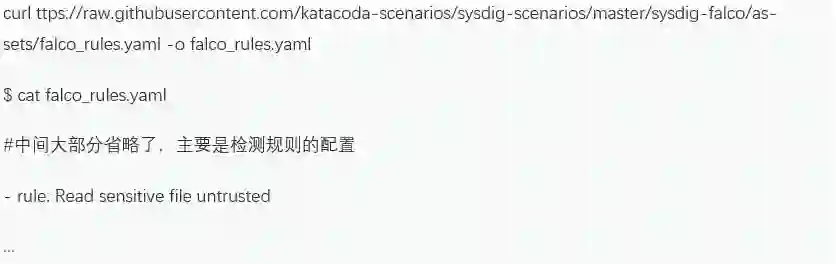 这是一个相当复杂的规则,可能你现在还没有完全理解每个部分,但看到识别规则名称、描述、一些触发条件、事件输出以及Falco提供的一些上下文感知变量,如proc.name或%container.info,优先级和一些标签。这是Sysdig Falco的特有语法和配置导致的。