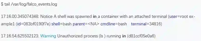 如果用tail/var/log/falco_events.log查看日志,可能会看到: