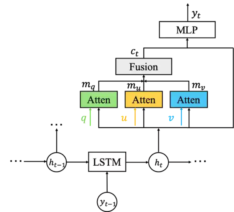 团队在视觉对话任务中的解码端引入多模态注意机制,有效地缓解了只利用编码端输出多模态信息融合的局限性,在解码过程中能够较好的进行一些错误纠正及语义丰富。