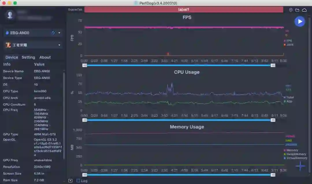 实测王者荣耀全程最高画质,帧率基本稳定在 60 帧,好像王者荣耀已经难不住现在的手机了。