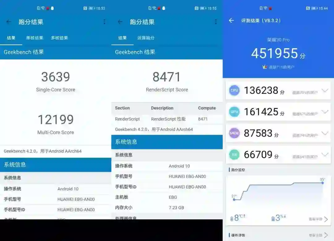 简单跑个分,室温下,安兔兔跑分 45 万,Geekbanch 4 单核 3639,多核 12199。