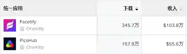 截至24日,Facetify和PicsHub全球下载量和收入数据来源:App Annie