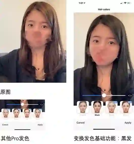 FaceApp除了免费版本的时光机、基础发型改变,其pro版本还有很丰富的细节功能,比如改变表情、不同风格的形象设计、更多丰富的发型发色等等。