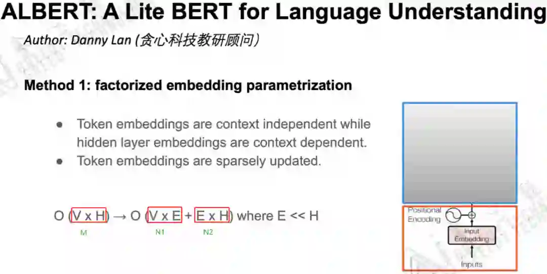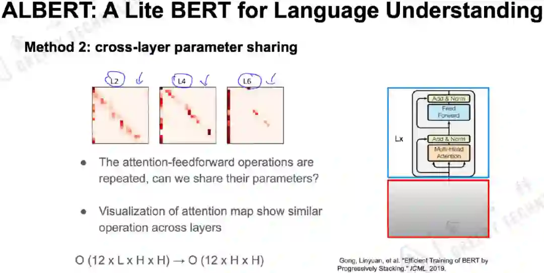 ALBERT发现Transformer的第 、 、 层参数可视化后,学到的东西很类似,用一个参数矩阵来表示 、 、 层参数,做到多层参数共享,节省内存空间。