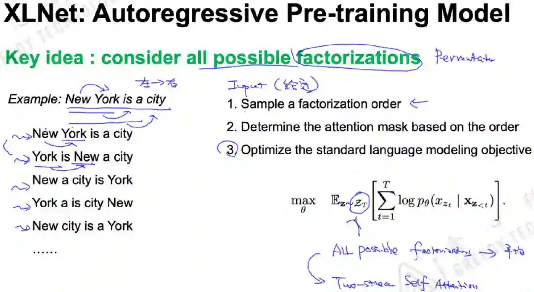 所以,AR方式所带来的自回归性学习了预测 token 之间的依赖,这是 BERT 所没有的;而 BERT的AE方式带来的对深层次双向信息的学习,却又是像ELMo还有GPT单向语言模型所没有的,不管是有没有替换 “[MASK]”。于是,自然就会想,如何将两者的优点统一起来? 这时就到了XLNet登场的时间。