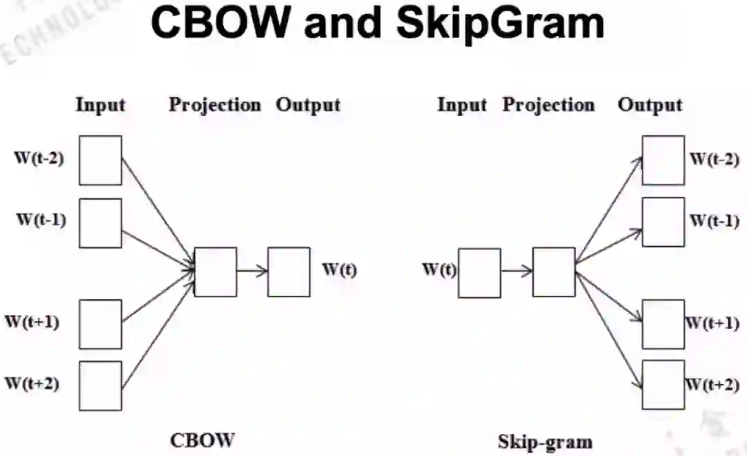 比较经典的词向量模型是Word2Vec,主要包含两个模型:CBOW和SkipGram模型。CBOW是根据上下文来预测中心单词;SkipGram通过中心词来预测上下文的单词。