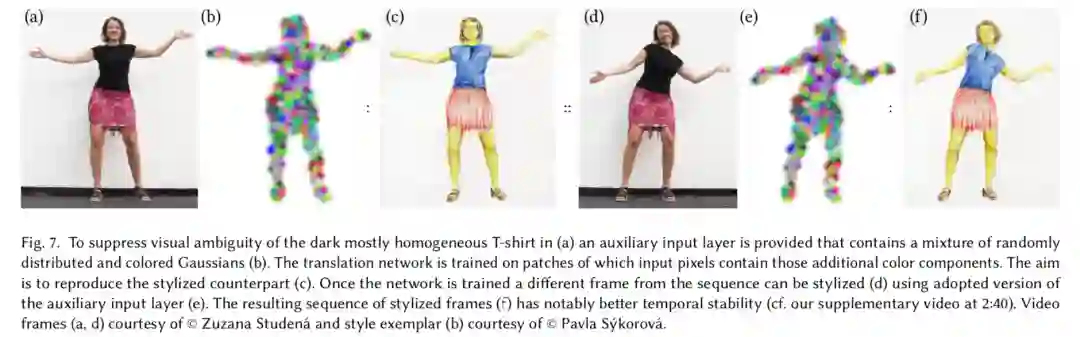 也就是说,该方法实际上是一种翻译过滤器,可以快速从几个异构的手绘示例 Sk 中学习风格,并将其“翻译”给视频序列 I 中的任何一帧。