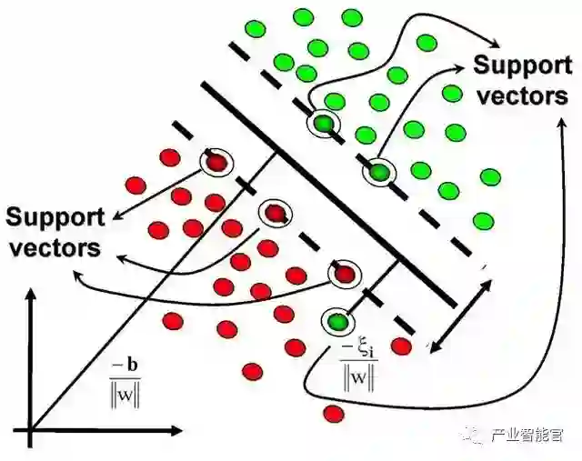 在SVM的硬间隔支持向量机中,由于几何间隔本身代表的是距离,是非负的,像上图所示的红色、绿色两个噪声点会使得整个问题无解。所以引入惩罚因子(松弛变量)这种统计学中的思想,使SVM有了容错能力,更鲁棒了。