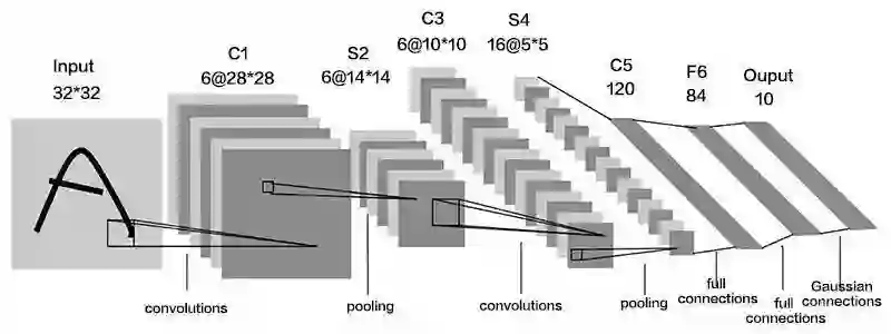 典型的卷积神经网络由卷积层、池化层、全连接层构成。在这里以LeNet5网络来说明,下图是这个网络的结构: