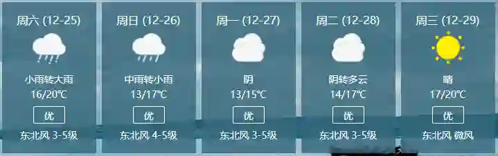 会议期间海口当地天气多雨,请您做好雨天出行安排,具体天气情况如下: