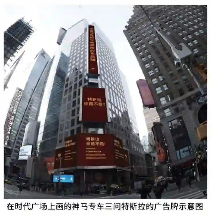 再来看特斯拉的多事之秋,继自燃事件的后续更新后,客户赴美维权,在时代广场祭出了“三块广告牌”