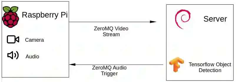 一旦检测到有人在视频流中,就可以使用ZeroMQ向Raspberry发送信号,播放一些非常响亮,令人讨厌的音频,以警告恐吓人们。