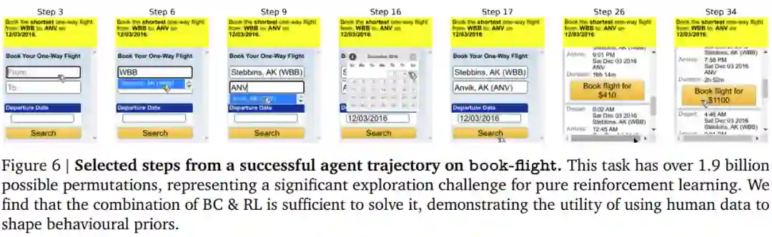DeepMind 从 77 名人类参与者那里收集了超过 240 万个 104 MiniWob++ 任务演示,总计大约 6300 小时,并使用模仿学习和强化学习 (RL) 的简单混合来训练智能体。