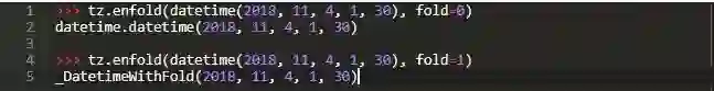 此外,dateutil能够通过提供一个tz.enfold函数将它反向移植到早期版本的Python,如果需要,可以创建一个提供fold属性的datetime子类。 所以,在Python 2.7上你会得到: