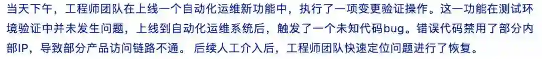 这个说法有木有很耳熟?与6月27日的阿里云故障如出一辙: