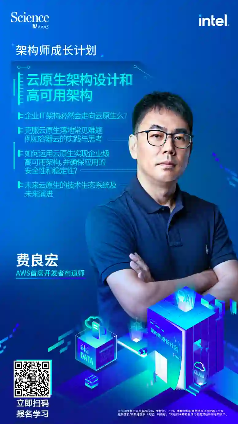 本期英特尔与 Science 联袂推出的“架构师成长计划”系列课程的主题,是由 AWS 首席开发者布道师费良宏带来的——《云原生架构设计和高可用架构》。