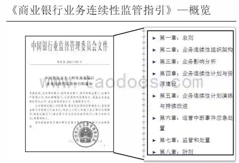 这其中,银监会于2011年发布的《商业银行业务连续性监管指引》在多个角度进行规定: