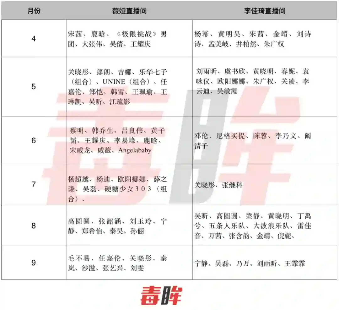 过去半年进入张沫凡直播间的明星是个位数,而毒眸统计到,近六个月来进入薇娅、李佳琦直播间的艺人数量总共达到了三位数