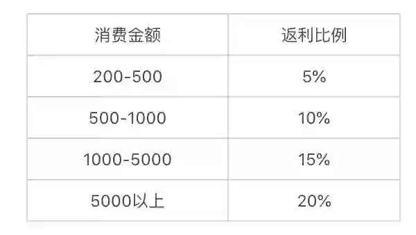 举例说明,如果您在2020年7月1日至2020年9月1日这两个月期间,真实消费了1万元,则返利公式如下: