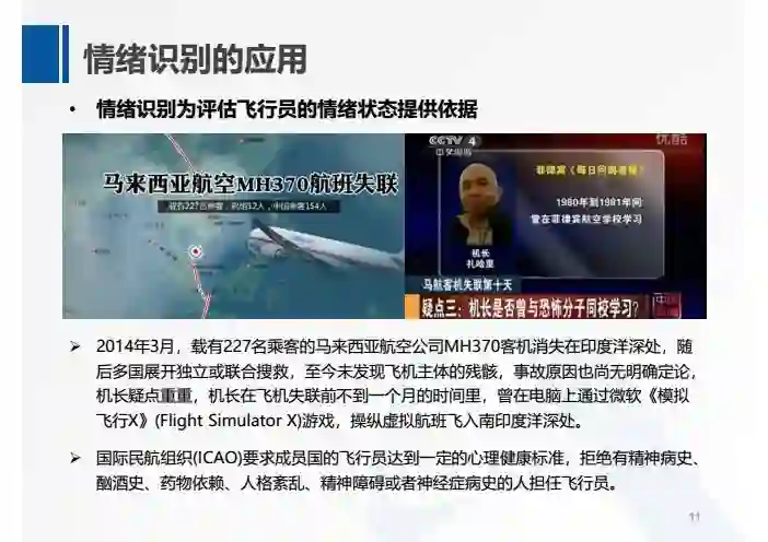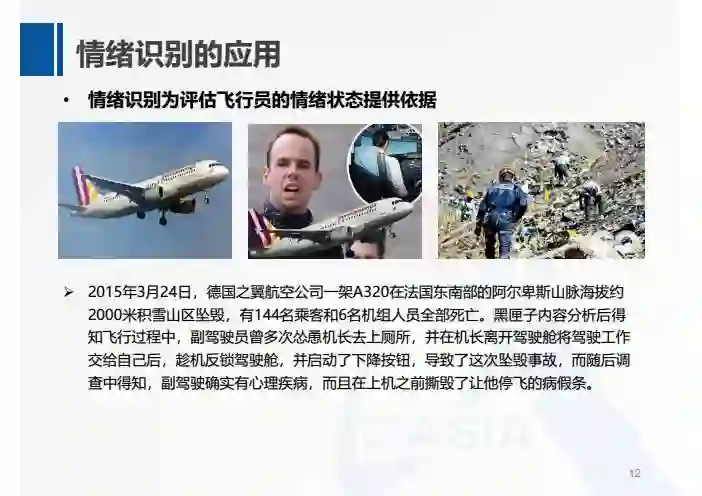 2015年3月份德国之翼航空公司在法国阿尔卑斯山脉坠毁。后来得知副驾驶员在飞行过程中多次怂恿机长上厕所,机长离开后他反锁驾驶舱,启动下降按纽,导致坠毁。调查中得知副驾驶确实有心理疾病,上一个例子是推测,而后一个已经被证实。所以飞机员的状态对飞行安全很重要。情绪识别准确的话,可以避免此类灾难的发生。