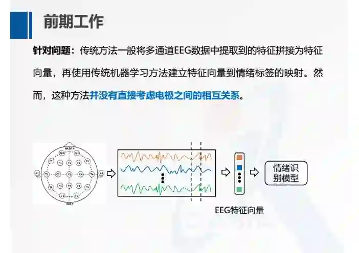 传统方法一般是把EEG数据提取特征然后拼接起来,再建立特征向量到情绪标签的映射。这样导致电极之间的空间关系丢失。