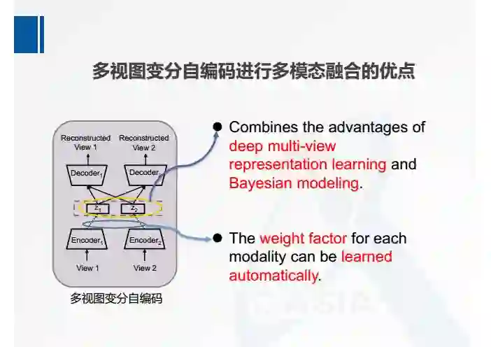 因此就把它当做多视图理解,通过多视图编码找到两种视图之间的隐含表征。以前的传统自编码把隐含表征的先验和后验都当作高斯分布。这里有两个模态,做了一个混合高斯,可以通过脑电自己生成脑电,脑电可以生成眼动,在这种框架下二者可以互相生成。多视图变分自编码是一个多视图表示学习,利用了贝叶斯推断。脑电和眼动有一些权重,权重体现出对情绪识别的重要性。