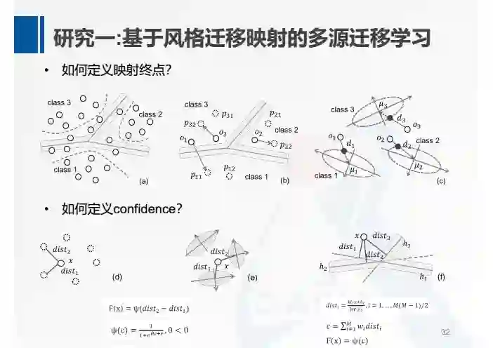 做迁移的时候,有些目标样本上是有样本标签的,置信度就比较高,但是还有一部分目标没有标签,这时要如何迁移呢?我们需要定义置信度,以前的做法是把最近的距离和第二近的距离做一个差,定义一个函数。我们定义加权距离,有两种方式,一种是监督式,仅仅只用有带标签的源里的数据,没有用到没有标签的数据。