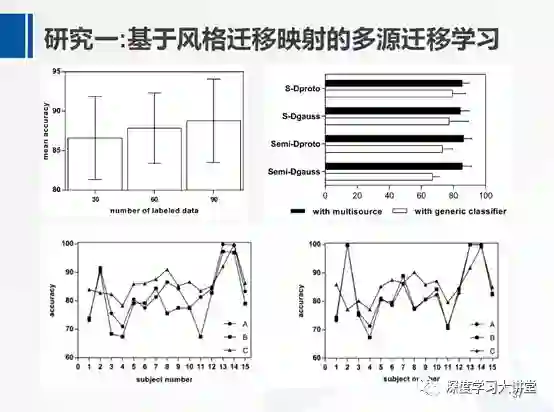 我们把学到的标签映射回脑地形图,进行可视化。我们在脑电上观察,源和目标在处理前很不相似,但迁移之后比较相似。在我们提出的方法中,仅需采集新被试的少量标注样本,就能使现有模型直接用在新被试,具备重要的实际应用价值。本方法要求新被试的少量标注样本,在此基础上,也可以利用新被试的无标注样本,可在监督学习及半监督学习下工作。在迁移中使用多个源,可有效提升模型的泛化能力。这个工作已经被IEEE Trans. On Cybernetics接收。