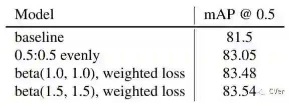 注意mixup中最重要的超参数就是α 和 β ,不同的值对结果(mAP)会有很大影响,结果如下所示: