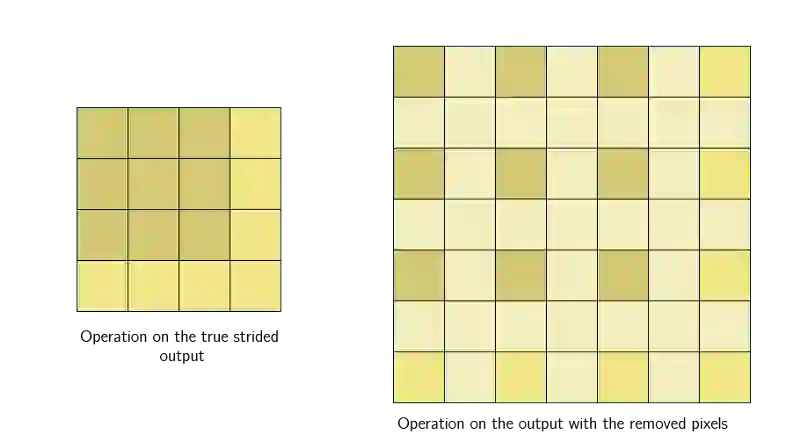 步幅卷积背后的想法是我们只滑动固定距离的间隔,并跳过中间的网格。