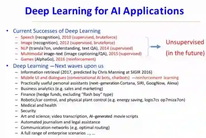 下面我给大家谈谈深度学习在AI里的一些应用,这里会先谈当前深度学习已经成功应用的成果。