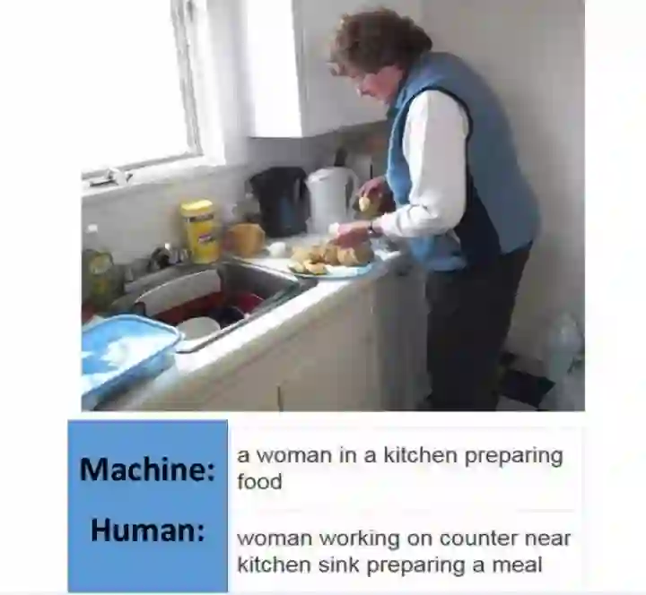 最后的结果如下:我们在训练图片的时候,它越来越能够认识到人在做什么事。图中是人和机器所看到的,机器会认为这个人在准备食物,但其实人会认为她在做更实际的东西,会把所有的图片都认出来,我们现在已经做到跟人的匹配率达到97.8%,也是通过反复Resnet学习去做出来的。