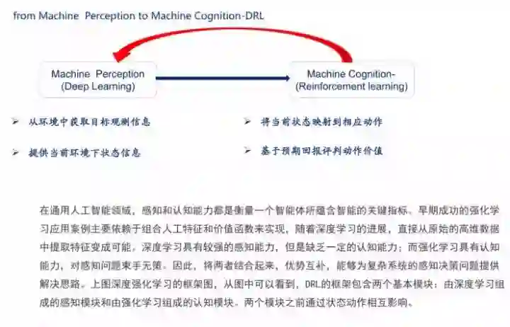 认知过程要比感知过程复杂,感知就是认识之后反馈一个比较完整的信息状态,认知就是获得你的信息,然后再把这个信息传递给动作,做出动作之后再对动作的价值做评价,然后持续改进动作。