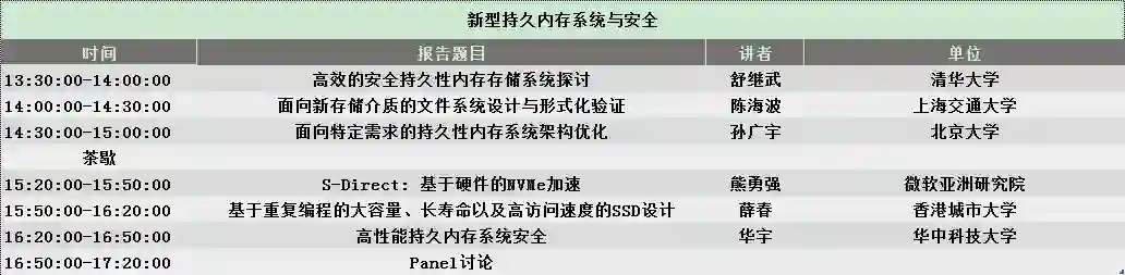 云计算、大数据和人工智能等技术的快速发展对计算机的内存系统在体系架构、访问性能、持久可靠和安全一致等方面都提出了新的挑战。新型存储系统能够提供持久的、非易失的内存存储服务,构建面向持久内存的体系结构、功能组件和生态体系。然而,目前的持久内存系统在系统架构和安全性等方面正面临多种技术挑战,阻碍相关技术在实际应用中发挥作用,并影响存储系统的整体性能。本论坛将讨论新型持久内存系统的前沿和关键技术,主要包括持久内存系统的体系结构、安全和加密方法、高并发访问和管理机制、数据一致性保证机理等年度热点问题和技术挑战。此次论坛深入讨论这些问题,并达成共识,促进我国学术界与工业界在新型持久内存系统的研究与发展。